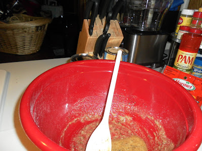 | I sprayed my pan with Pam. I always do this over the sink to try to avoid getting it all over the place. |